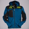 Ergonomic Jacket with hood, knitting with inserts in black softshell, long SBS taped zip, two side zip pockets, one chest pocket.