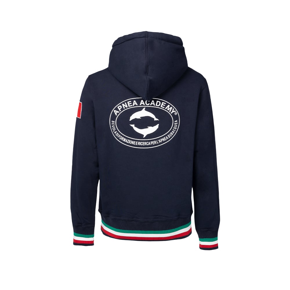 Tricolore all'interno del cappuccio, in vita e sulle maniche