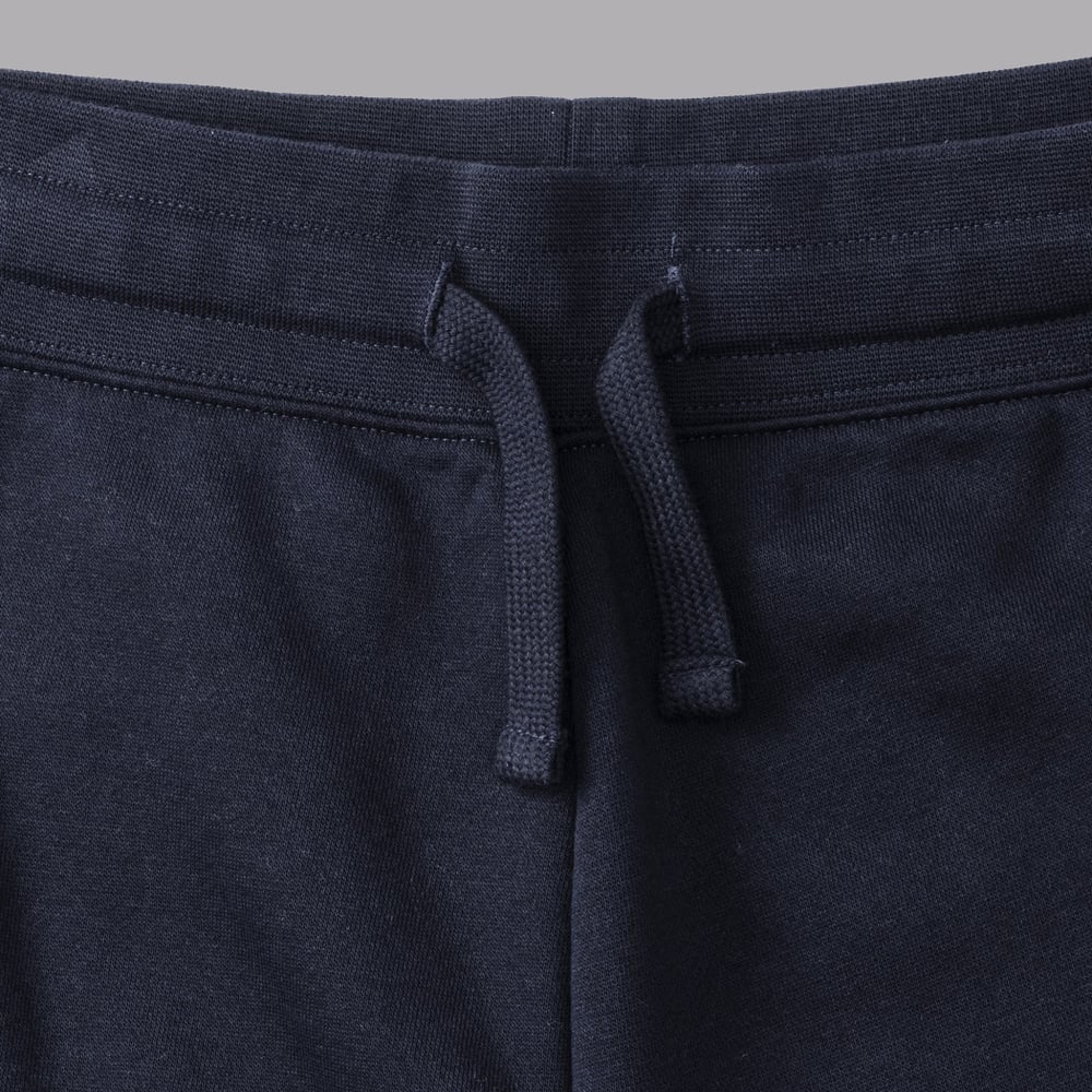 Pantaloni dal taglio contemporaneo, due tasche a filetto dello stesso tessuto con zip a scomparsa, tasca posteriore con toppa, cordoncino piatto in vita con asole ad occhiello, polsino e vita a costine, felpati internamente.